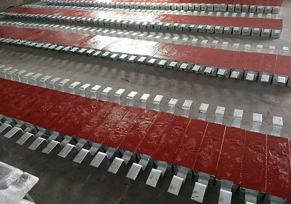 我公司按照GB/T 4948-2002研發(fā)生產(chǎn)的鋁合金犧牲陽極(簡稱:鋁陽極)適于海水介質(zhì)中的船舶、機(jī)械設(shè)備、壓載水艙、儲罐內(nèi)壁、濱海設(shè)施、海底管道、碼頭鋼樁、海洋平臺、電纜等設(shè)施金屬防腐蝕的陰極保護(hù)。
